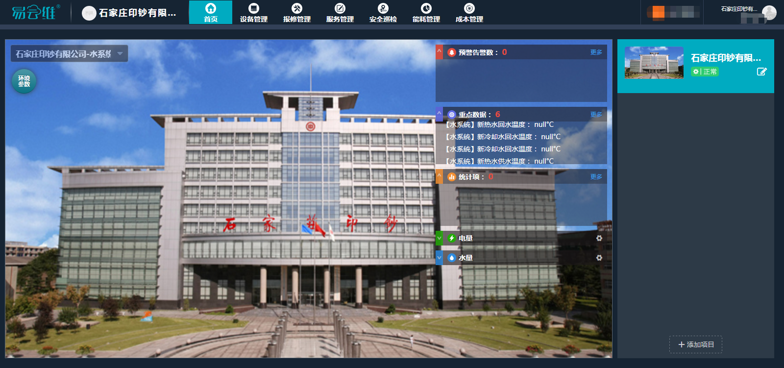 設(shè)備運維平臺易云維為石家莊印鈔廠水泵自動控制系統(tǒng)提供服務(wù)