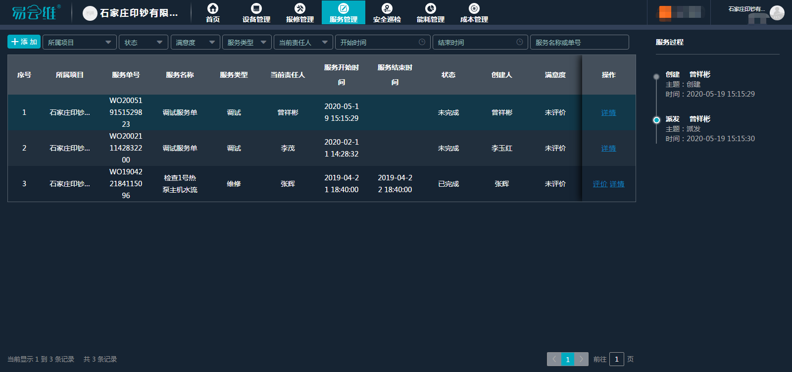 工廠設(shè)備運維平臺應(yīng)用功能:設(shè)備管理、報修管理、服務(wù)管理;